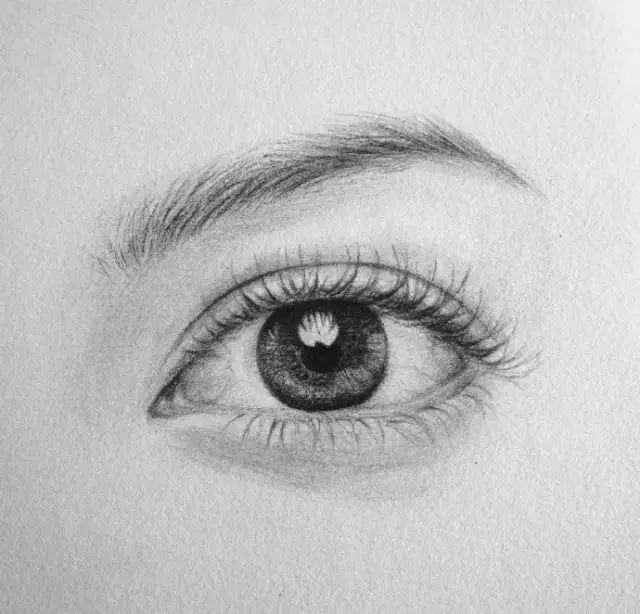第一:如下图,女生眼睛睫毛较长,眉毛较细,眼睛很明亮,比较柔和,轮廓没有那么明显,用浅淡的调子塑造,也可以把眼睛塑造很精致。
